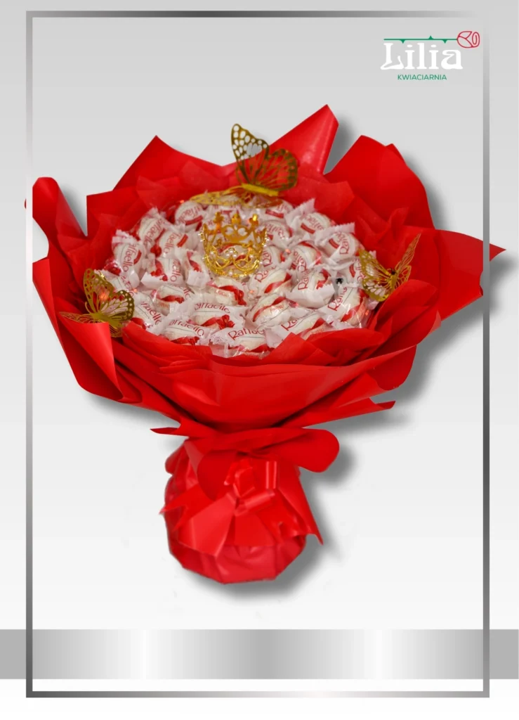 Elegancki box w kształcie serca z żywymi kwiatami i Raffaello - idealny